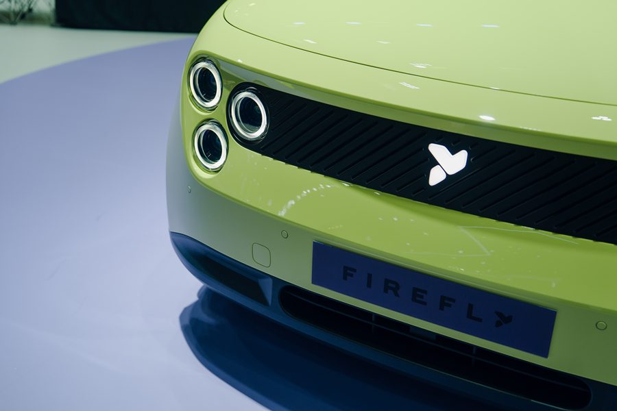 Firefly ยนตรกรรมไฟฟ้าขนาดกะทัดรัด ที่เน้นความ ‘Compact outside, Spacious inside’ ถ่ายทอดผ่านแบรนด์ดีเอ็นเอ ‘vivid, thoughtful, and solid’ (สดใส ใส่ใจ และแข็งแกร่ง) ผสานดีไซน์และสมรรถนะเข้ากันอย่างลงตัว มาพร้อมโหมดการขับขี่ 3 รูปแบบ ได้แก่ โหมด ECO โหมด Comfort และโหมด Sport ระบบขับเคลื่อนล้อหลัง (RWD) มอบกำลังสูงสุด 105 กิโลวัตต์ แรงบิดสูงสุด 200 นิวตันเมตร สามารถทำความเร็วสูงสุดได้ 150 กิโลเมตรต่อชั่วโมง พร้อมอัตราเร่ง 0–100 กม./ชม. ใน 8.1 วินาที ด้านพลังงานมาพร้อมแบตเตอรี่ลิเธียมไอออนฟอสเฟต (LFP) ขนาด 42.1 kWh รองรับระยะทางวิ่งได้ไกลสูงสุด 400 กิโลเมตร ตามมาตรฐาน NEDC รองรับการชาร์จเร็ว DC 10–80% ภายในเวลาเพียง 30 นาที อีกทั้งยังรองรับฟังก์ชัน V2L สำหรับจ่ายกระแสไฟฟ้าให้กับอุปกรณ์ภายนอกได้สูงสุด 3.68 กิโลวัตต์ เพิ่มความยืดหยุ่นในการใช้งานในหลากหลายสถานการณ์