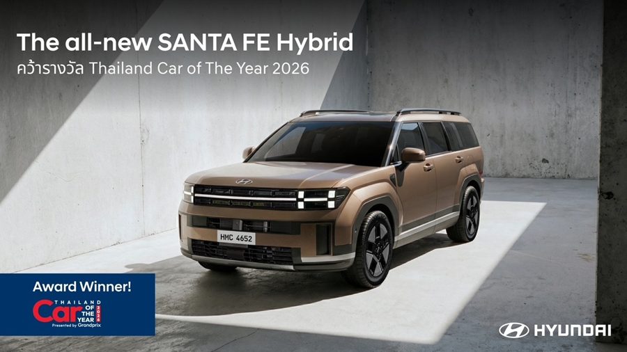 บริษัท ฮุนได โมบิลิตี้ (ประเทศไทย) จำกัด ประกาศความสำเร็จรับต้นปี 2569 หลังคว้า 2 รางวัลอันทรงเกียรติจากเวทีประกาศรางวัลรถยอดเยี่ยมแห่งปี “CAR & BIKE OF THE YEAR 2026” จัดโดย บริษัท กรังด์ปรีซ์ อินเตอร์เนชั่นแนล จำกัด (มหาชน) สะท้อนความแข็งแกร่งของไลน์อัป SUV จาก Hyundai all-new SANTA FE Hybrid และ Hyundai PALISADE Diesel ตอกย้ำความแข็งแกร่งของแบรนด์ที่พร้อมมอบผลิตภัณฑ์ที่มีคุณภาพยอดเยี่ยมแก่ผู้บริโภคชาวไทย