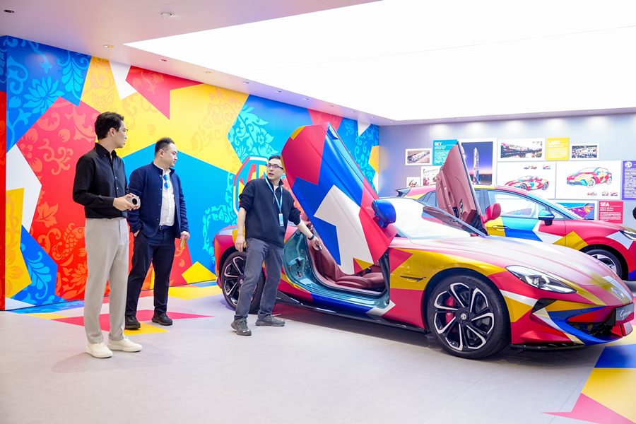 ภายในงาน เอ็มจี ได้นำรถบางส่วนมาตกแต่งโดยได้รับแรงบันดาลใจการออกแบบจากศิลปินชื่อดังอย่าง Jacky Tsai ศิลปินร่วมสมัยชาวจีนที่มีฐานอยู่ในลอนดอน (UK) และถือว่าเป็นหนึ่งในศิลปินที่ “นำวัฒนธรรมตะวันออก ป็อปอาร์ตตะวันตก” มาผสมผสานกันทำให้รถมีรายละเอียดที่โดดเด่นมากขึ้น