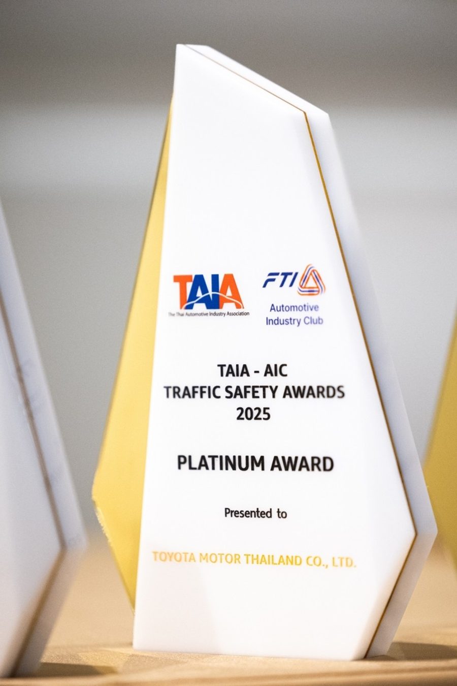 บริษัท โตโยต้า มอเตอร์ ประเทศไทย จำกัด รับรางวัล Platinum โครงการประกวดมาตรการองค์กรส่งเสริมความปลอดภัยทางถนน TAIA-AIC Traffic Safety Awards 2025 จากสมาคมอุตสาหกรรมยานยนต์ไทย โดยมี นายนันทวัฒน์ ศรีวรัตน์อัชกุล ผู้ช่วยกรรมการผู้จัดการใหญ่เป็นตัวแทนรับมอบรางวัล ภายในงาน Bangkok International Motor Show 2026 เมื่อวันที่ 31 มีนาคม 2569 ที่ผ่านมา