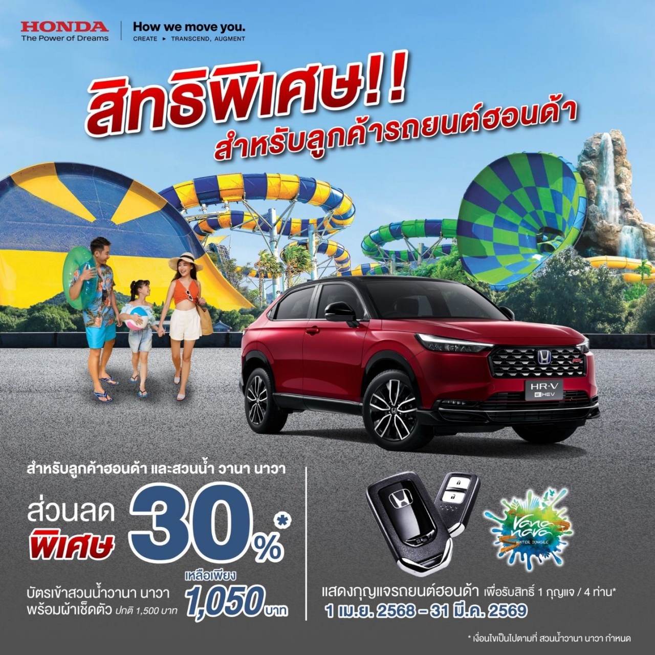 ครอบครัวฮอนด้า รับส่วนลดจัดเต็ม 30% เพียงโชว์กุญแจรถยนต์ฮอนด้า ที่สวนน้ำ วานา นาวา หัวหินให้ลูกค้า สุข สนุก เที่ยวได้ยาว ๆ ไม่ต้องรอซัมเมอร์