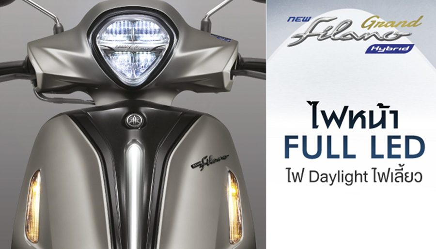 NEW YAMAHA GRAND FILANO HYBRID มาพร้อมกับ CLASSY with PREMIUM DESIGN ที่ยังคงความหรู ล้ำ ด้วย ไฟ FULL LED รอบคัน โดดเด่นทุกมุมมองอย่างมีระดับ ทั้งไฟหน้า ไฟ Daylight ไฟเลี้ยว และไฟท้าย แบบ LED รอบคัน ให้แสงสว่างชัดเจน ทนทาน